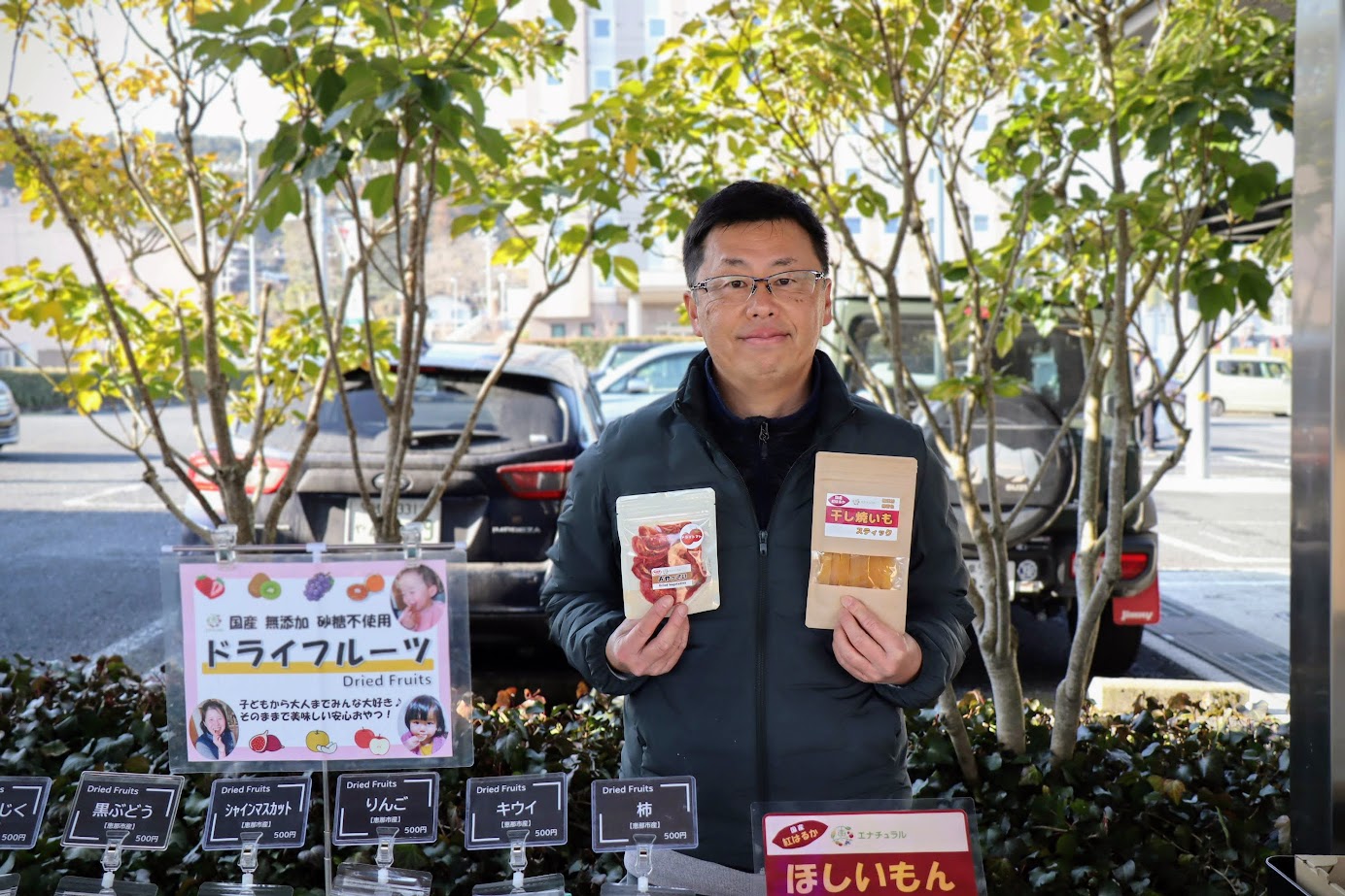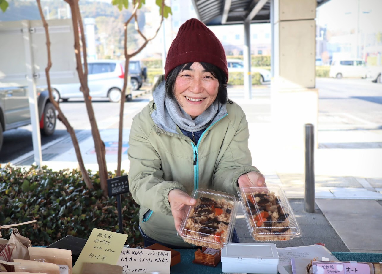 フードロスに取り組む「もったいない工房」のおやつなどの加工品、先祖代々受け継いだサトイモやサツマイモなどの農産物をつくっています。